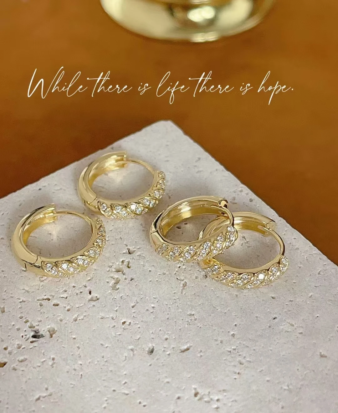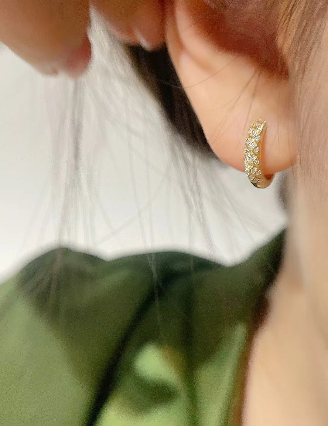 18K Real Recycled Gold 0.24ct Genuine Full Diamond Ear Huggies Real Diamond 50pc